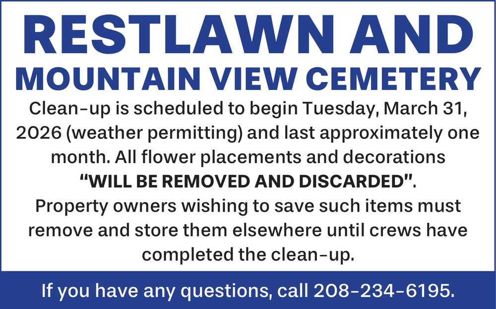 Feb 28, 2026. Restlawn and Mountain View Cemetery Funeral Ads from Idaho State Journal